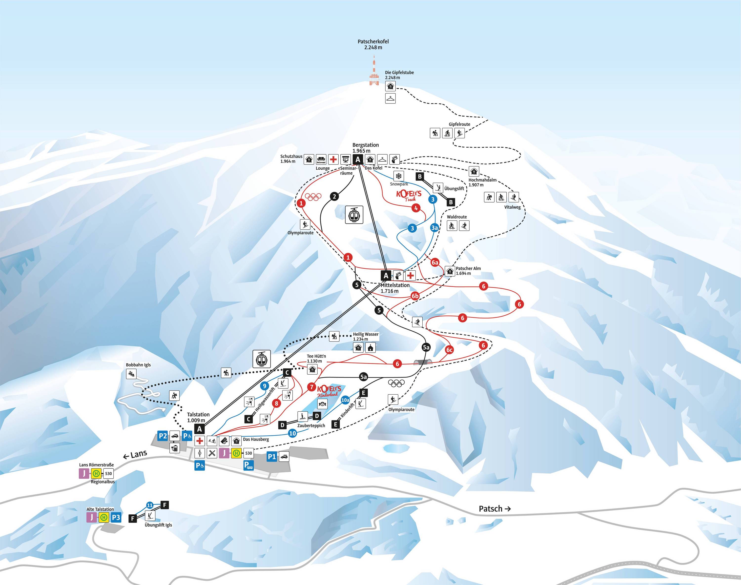 Oriëntatie (pistekaart, informatieborden, bewegwijzering piste) en veiligheid in het skigebied Patscherkofel – Innsbruck-Igls