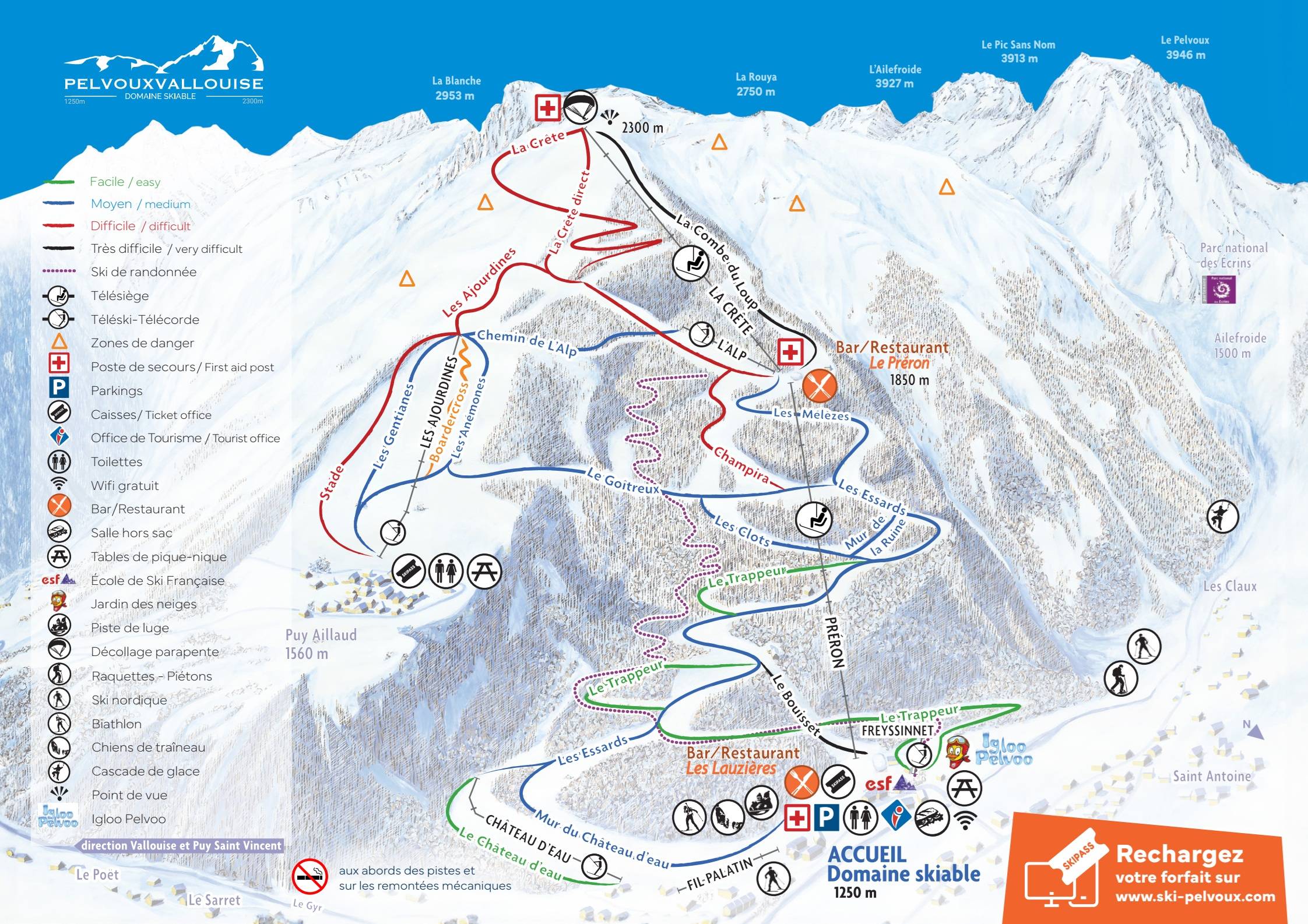 Pistekaart Pelvoux/Vallouise seizoen 2025/2026