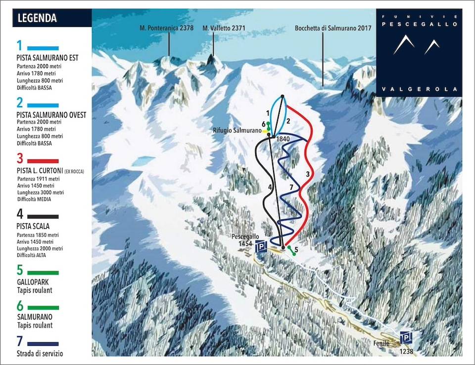 Pescegallo (0,2 km), Fenile (2,4 km), Gerola Alta (5 km) Plaatsen bij het skigebied