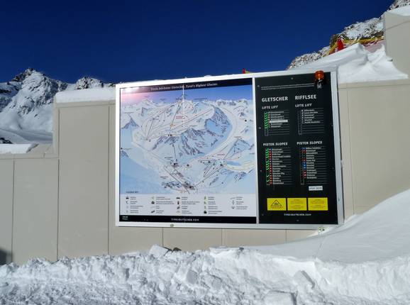 Het pisteplan geeft de hele gletsjer en het winterskigebied Rifflsee zeer goed weer. De beschrijvingen zijn duidelijk en overzichtelijk.