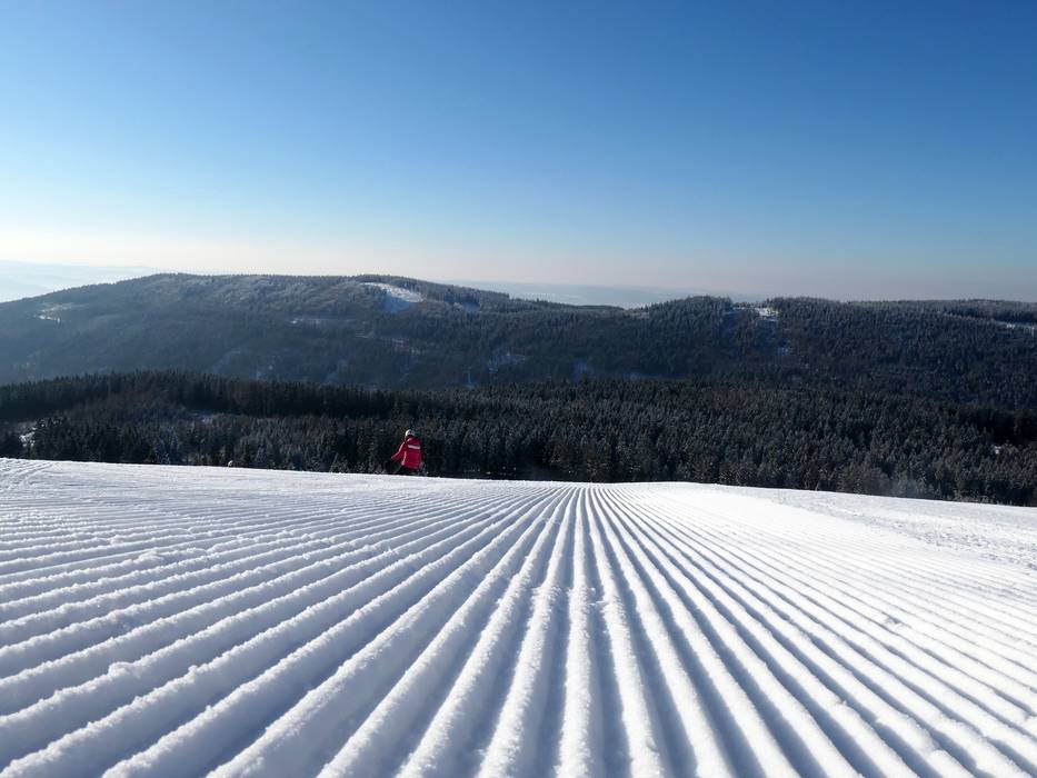 Dagelijks worden de pistes in het skigebied Pleßberg (Plešivec) met veel inzet geprepareerd.
