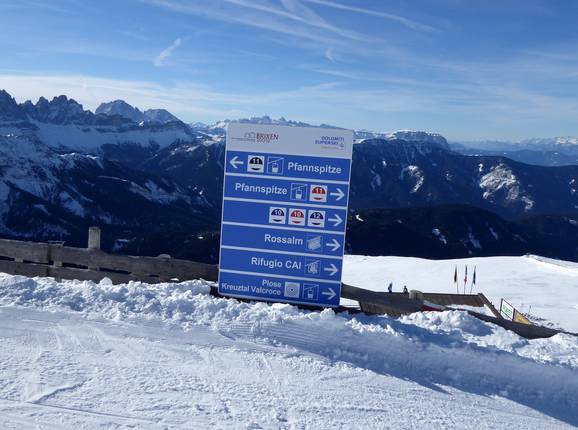 Oriëntatie (pistekaart, informatieborden, bewegwijzering piste) en veiligheid in het skigebied Plose – Brixen (Bressanone)