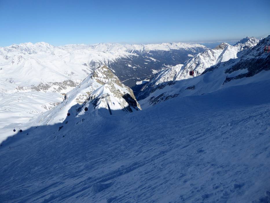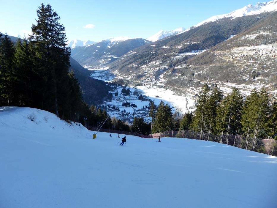 De zwarte piste loopt steil het dal in vanaf de Passo Paradiso. Deze wordt bediend door de gondelbaan Paradiso.