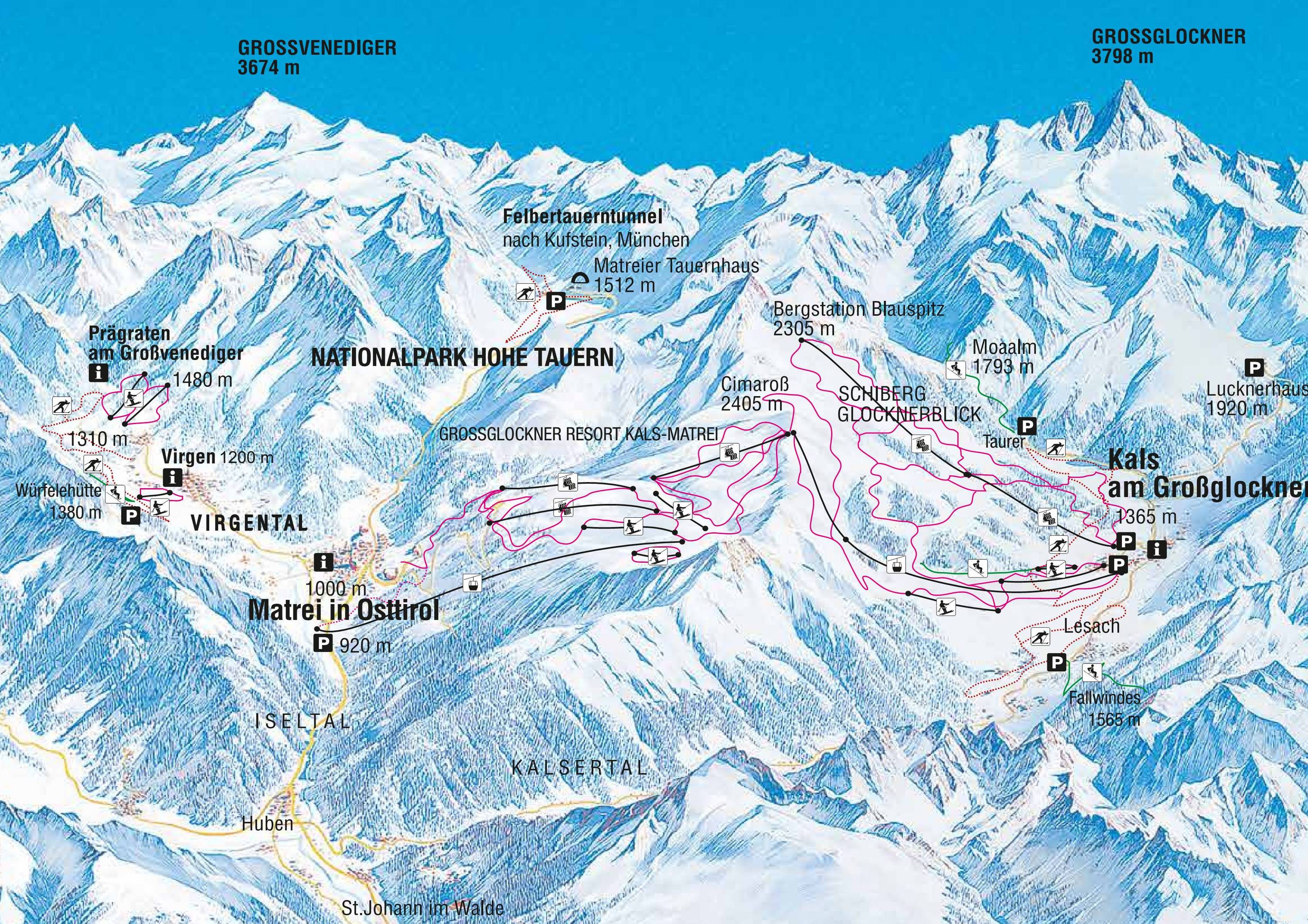 Pistekaart van het skigebied Prägraten am Großvenediger