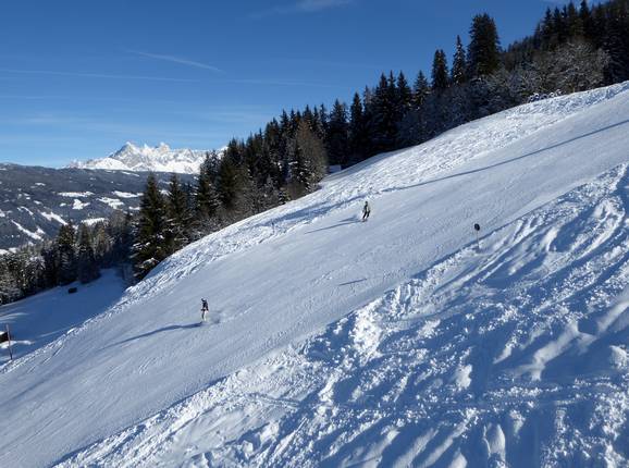 Er is een moeilijke afdaling voor gevorderden. Op sommige plekken kun je een uitstapje maken in de diepe sneeuw.
