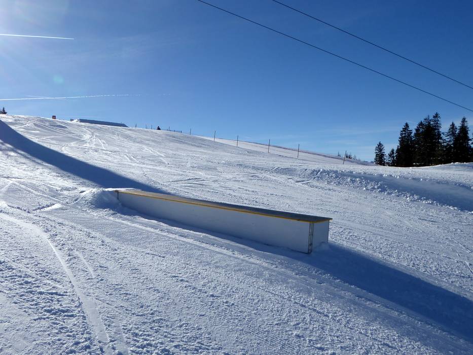 Het kleine snowpark bij de Kemahdhöhe biedt kickers en boxen die speciaal ideaal zijn voor freestyle-beginners.