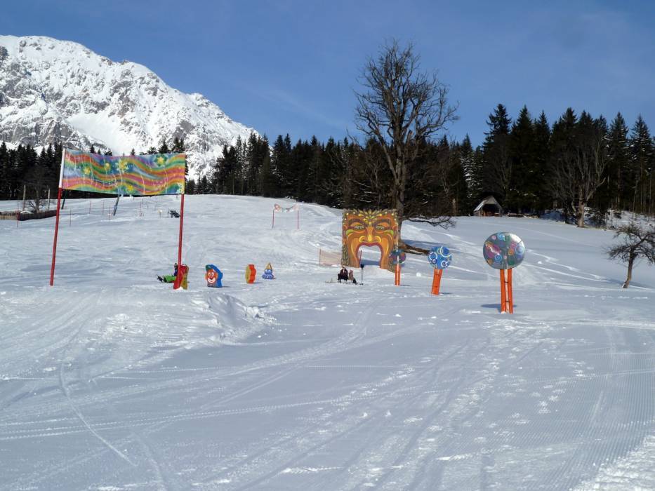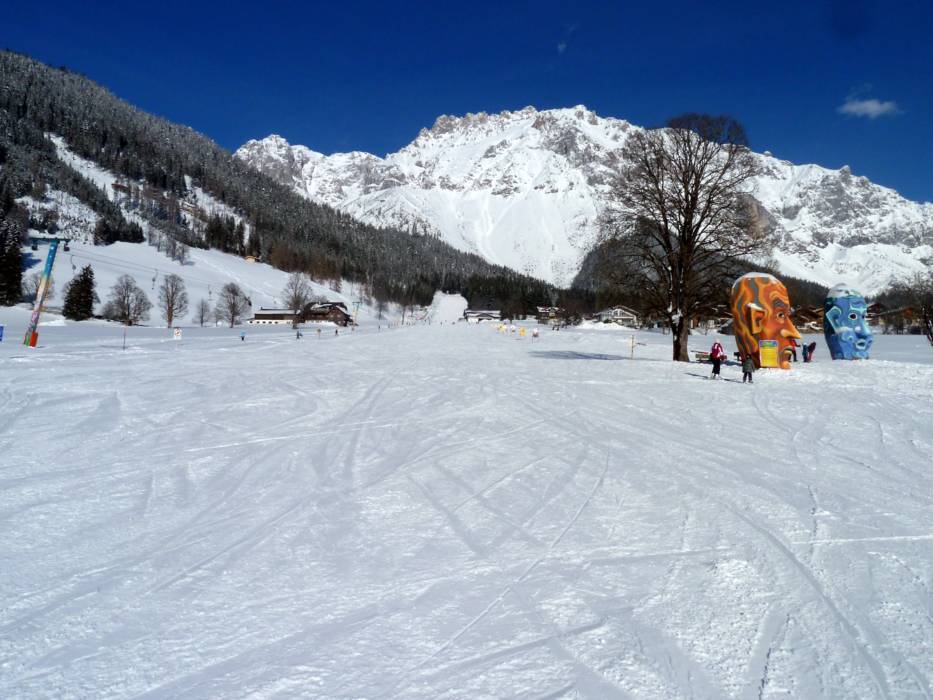Familievriendelijke aanbiedingen, sprookjesachtige pistes en oorspronkelijk karakter kenmerken het uitgestrekte skigebied op de Rittisberg in Ramsau am Dachstein. Met name skiën voor kinderen staat hier op nummer 1. In 'Kalis zauberhafter Winterwelt' leren ze het spelenderwijs: reuzensteenhoofden, doorlezenFamilievriendelijke aanbiedingen, sprookjesachtige pistes en oorspronkelijk karakter kenmerken het uitgestrekte skigebied op de Rittisberg in Ramsau am Dachstein. Met name skiën voor kinderen staat hier op nummer 1. In 'Kalis zauberhafter Winterwelt' leren ze het spelenderwijs: reuzensteenhoofden, adelaars- en bergkristalgrot, drakengezichten, mystieke klanken en natuurlijk Kali zelf helpen daarbij - een vrolijk wintersprookje voor het hele gezin. Het skigebied ligt op een hooggelegen plateau onder de Dachstein en richt zich naar het zuiden. Daarom liggen hier naar men zeg de 'zonnigste skiweiden van Oostenrijk'. Maar ook buiten het skiën en na zonsondergang is een dagje in de sneeuw in het wintersportgebied Ramsau erg leuk. De apart geprepareerde rodelbaan vanaf de Rittisberg die meerdere keren per week 's avonds verlicht is, is een van de mooiste en langste natuurlijke rodelbanen in de hele regio. Geregeld vindt hier een afwisselend avondprogramma voor gezinnen en kinderen plaats samen met de skileraren van Skischule Ramsau.