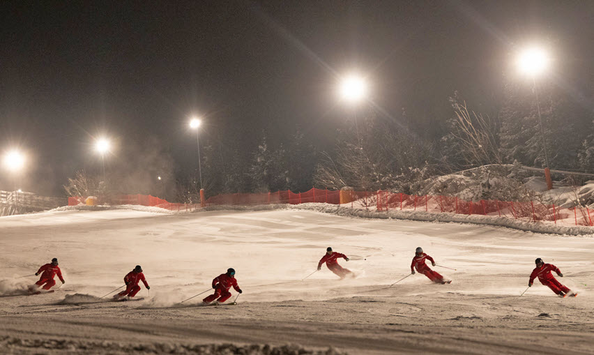 Sneeuwbeleving en puur winterplezier bij schijnwerpers