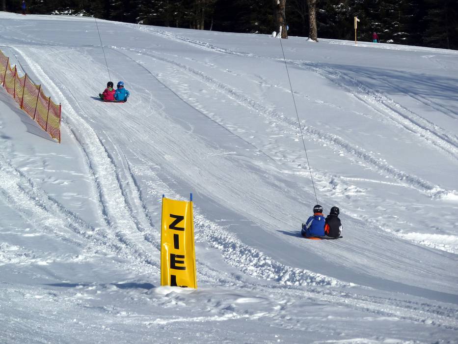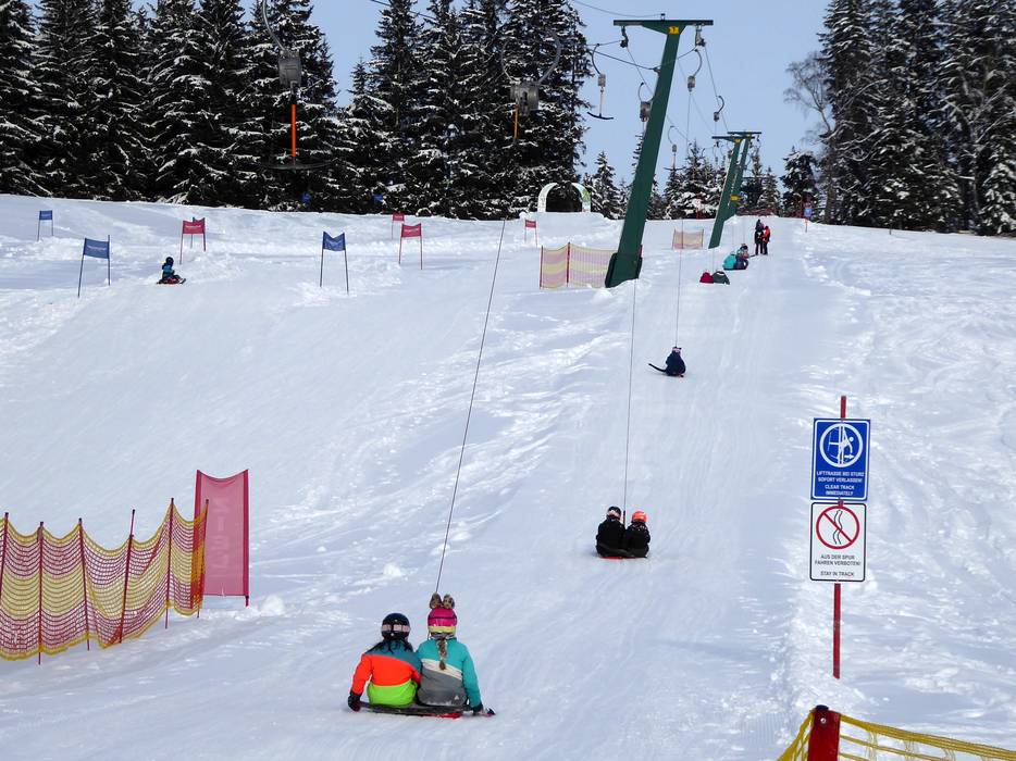 Bij de Drachenliften kun je je met de Zipfelbob omhoog laten trekken en daarna de pistes afsuizen. Plezier voor jong en oud.
