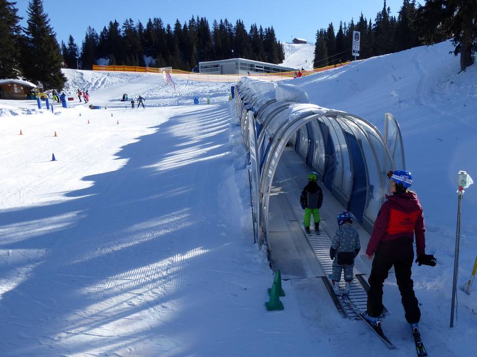 Het Kinderland met tovertapijt ligt direct bij het dalstation en wordt begeleid door Luisl's Skischool.