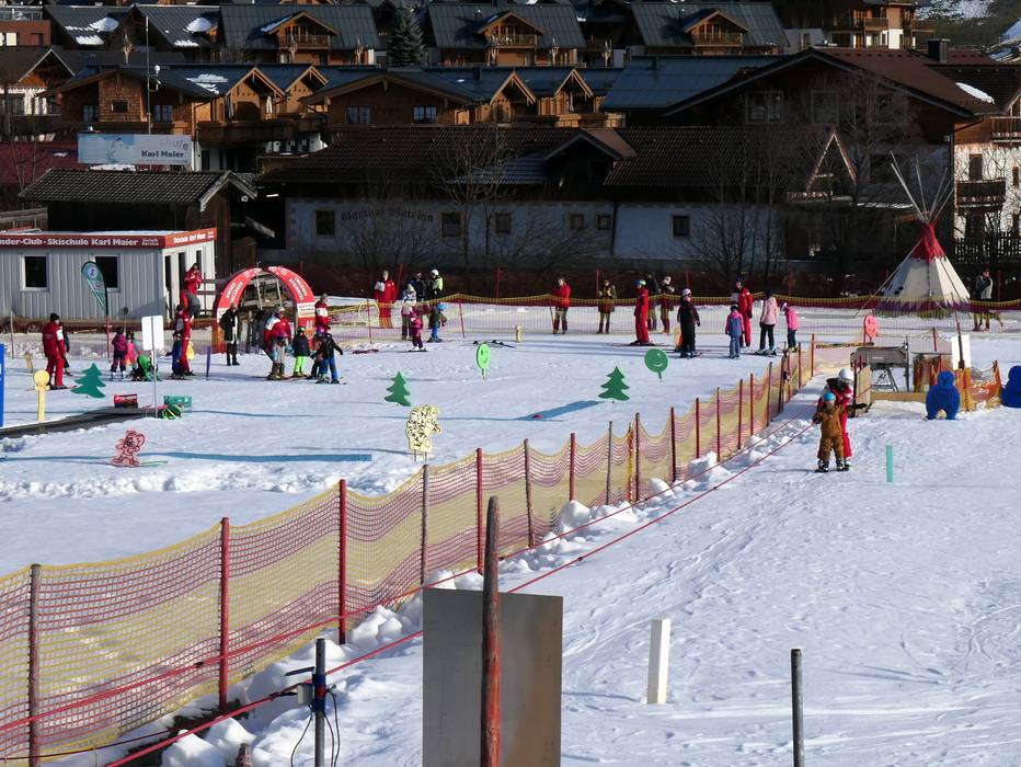 Het kinderterrein bij het dalstation van de Hochalmbahn in Rauris heeft een tovertapijt en een kleine oefenlift. Kinderen kunnen optimaal oefenen bij de enthousiaste skileraar.