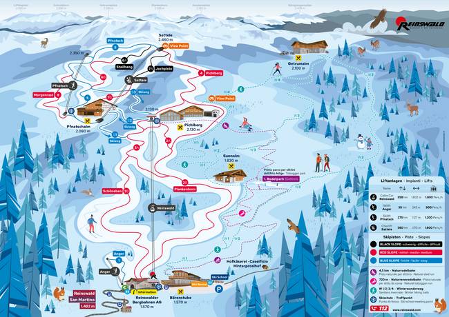 Reinswald (San Martino in Sarentino) (0,5 km), Sarntal (Sarentino) (12 km) Plaatsen bij het skigebied