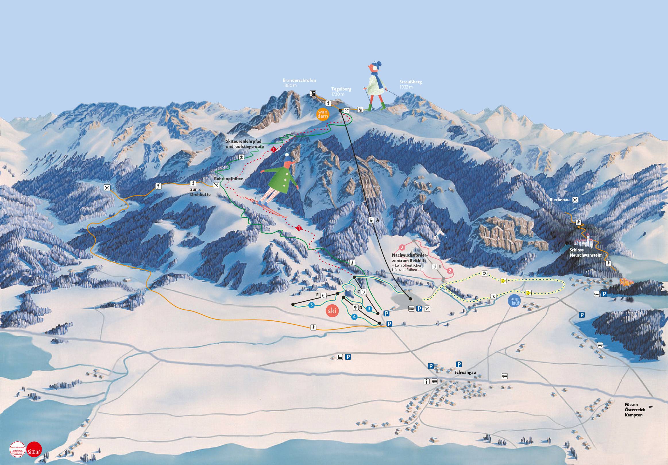 Schwangau (2,4 km), Hohenschwangau (3,2 km), Füssen (5 km) Plaatsen bij het skigebied