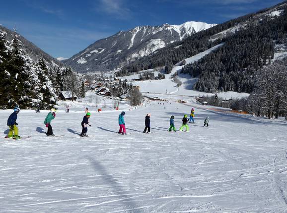 De skischommel is perfect voor kinderen en families. Het eigen kinderskigebied in het dal biedt op meer dan 5 hectare pisteoppervlak met 5 liften een ideaal oefenterrein. Drie transportbanden, waarvan één zelfs 176 meter lang, een sleeplift en een schotellift ontsluiten vijf verschillende makkelijke afdalingen. Een golvenbaan, speelhuis, avonturenparcours, Krispini Tunnel-Piste en dagopvang zorgen voor afwisseling en de beste sneeuwervaringen. Met de eerste Oostenrijkse kinderskischommel is de Riesneralm toonaangevend in Stiermarken en behoort tot de beste van Oostenrijk. De Magic Snow Academy runt hier een uitstekende skischool met een skischoolcentrum. In het hoogseizoen zijn er meer dan 40 skileraars.