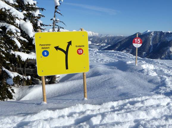 Grote informatieborden informeren de gasten op de belangrijke punten in het skigebied. De bewegwijzering is duidelijk en zeer goed. Je vindt gemakkelijk je weg in het skigebied.