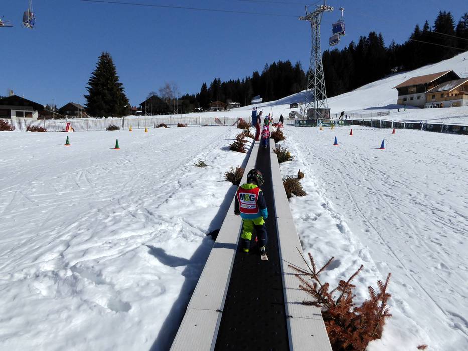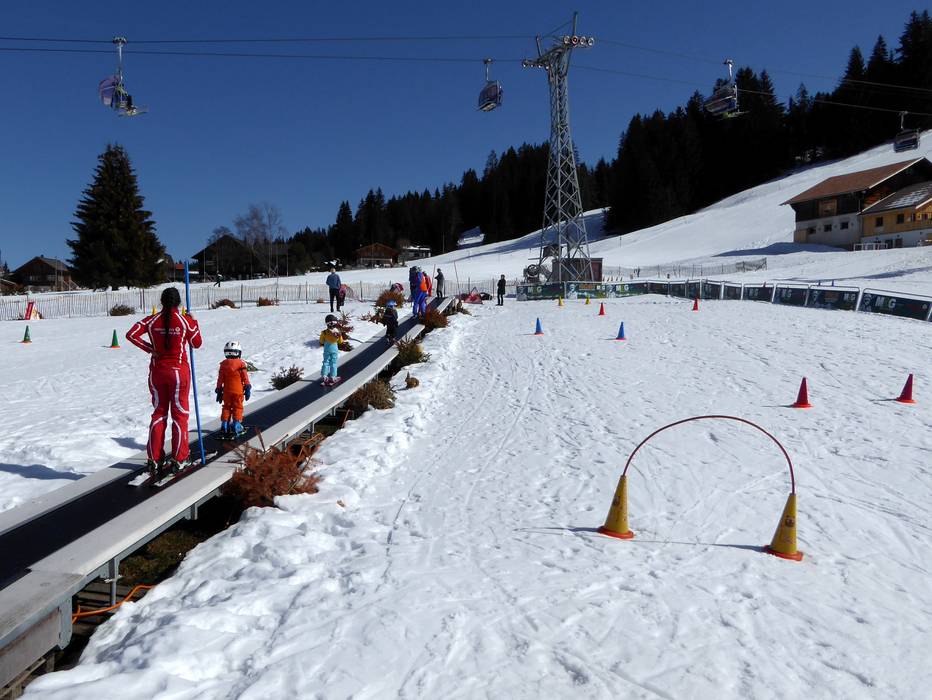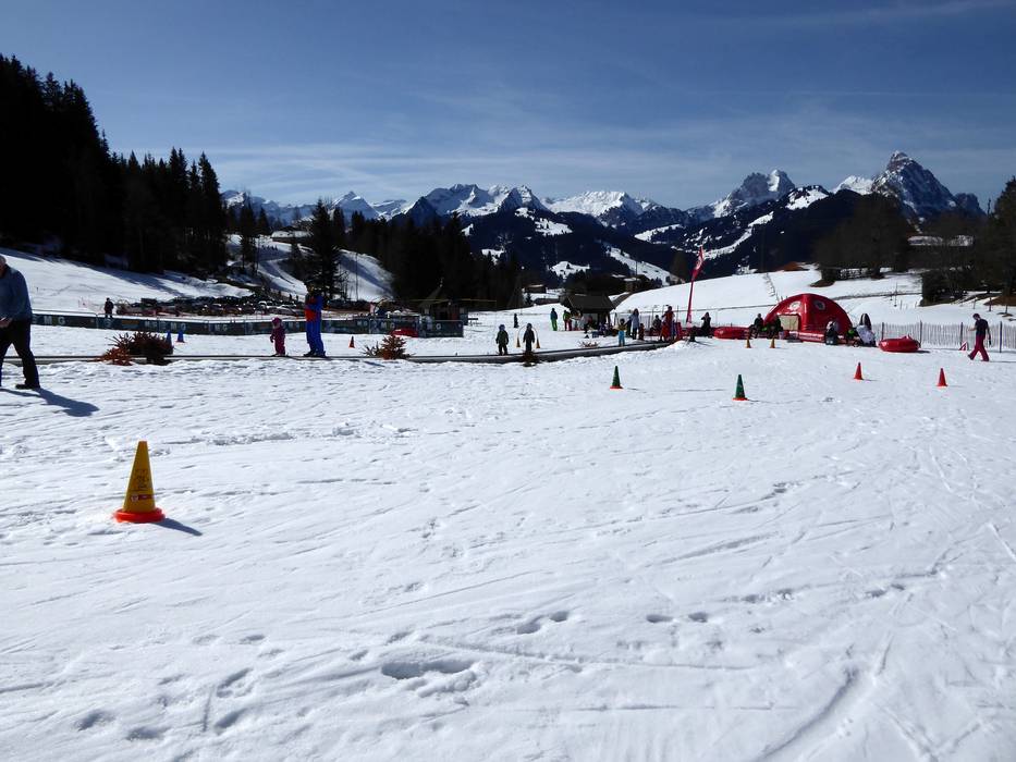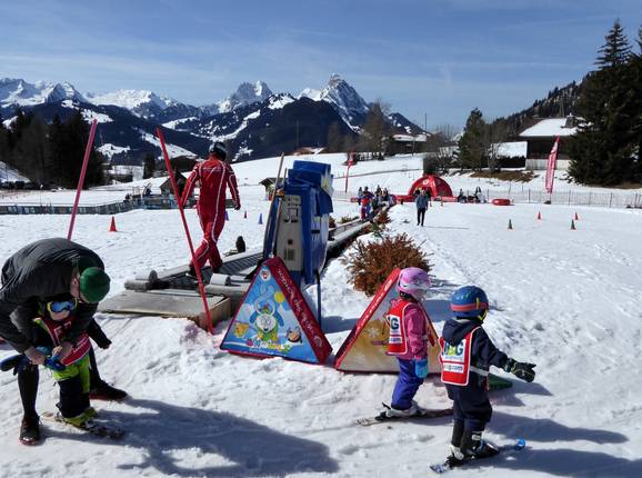 Het oefenterrein in Saanenmöser wordt beheerd door de skischool Saanenmöser en ligt direct naast het dalstation van de sleeplift Lätz Güetli. Een transportband brengt de kleintjes snel en veilig naar boven. Vrolijke figuren maken het aanbod compleet.