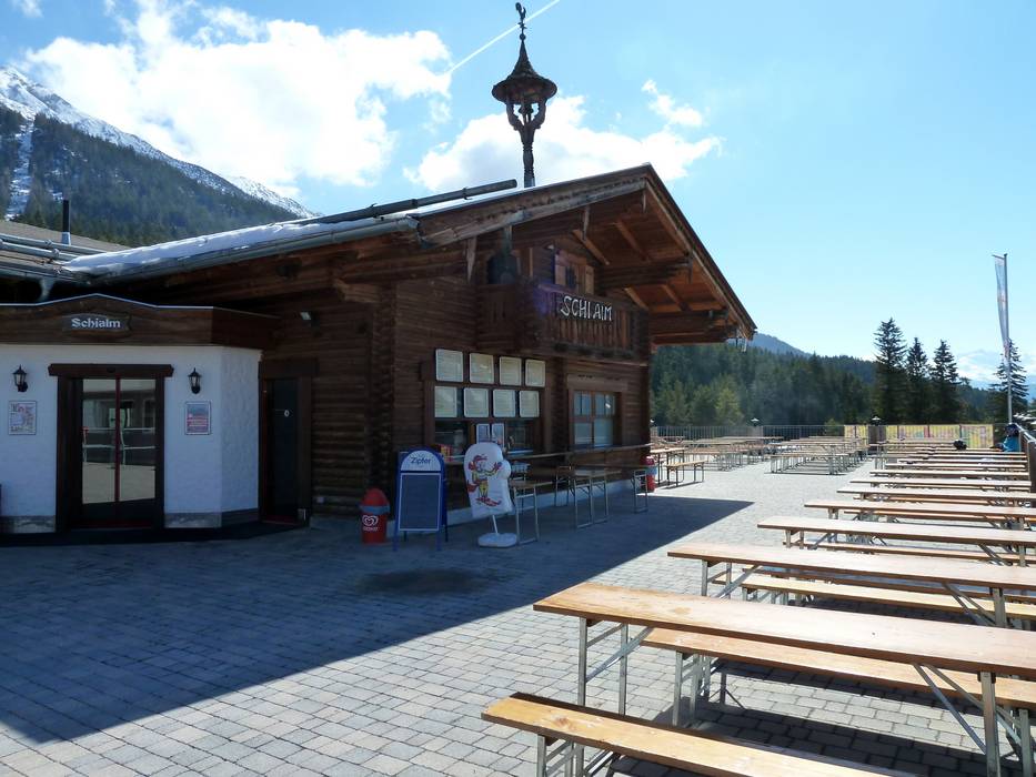 De Schialm is een gezellige houten hut met een groot terras en veel ruimte. Er worden klassiekers uit de berghut en regionale gerechten aangeboden.