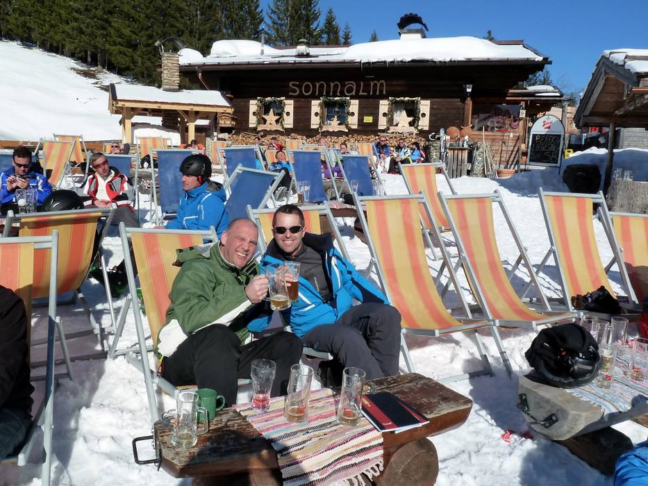 De feestlocatie in Hinterglemm direct aan de piste. Sfeer en feest elke dag na het wintersporten tot diep in de nacht.