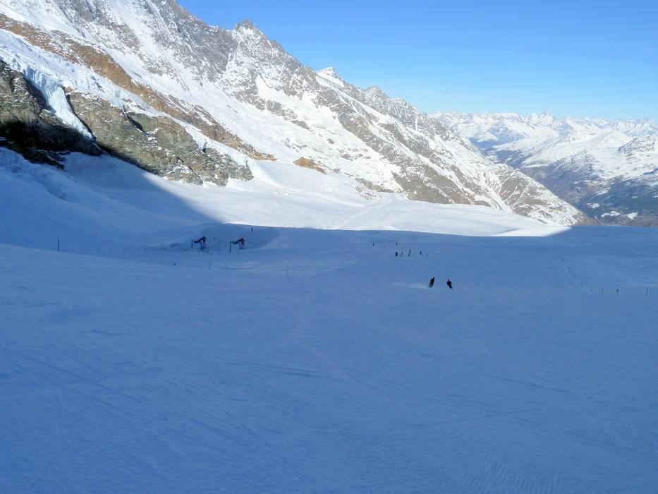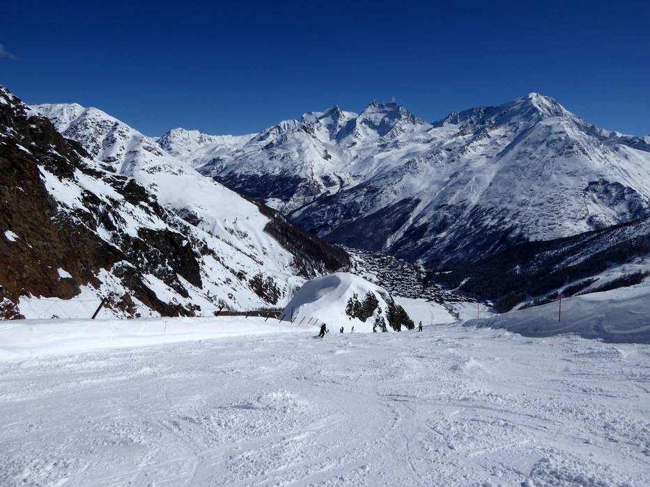 Het skigebied van Saas-Fee biedt afdalingen in alle moeilijkheidsgraden. De meeste afdalingen liggen boven de boomgrens en zijn meestal zeer breed. De gletsjerafdalingen op de Feegletscher zijn in het bovenste gedeelte vrij steil en worden daarna steeds vlakker. Rond het station Morenia vind je veel middelzware pistes bij de zespersoonsstoeltjeslift. Zeer indrukwekkend zijn de pistes van Längfluh via Spielboden naar Saas-Fee. Hier ski je langs de imposante gletsjers en verder door zeer rotsachtig terrein. Bij Plattjen vind je behoorlijk uitdagende pistes. De pistes in het onderste gedeelte leiden door bosstroken naar Saas-Fee. In het dalgebied wachten lichte en brede beginnerspistes.