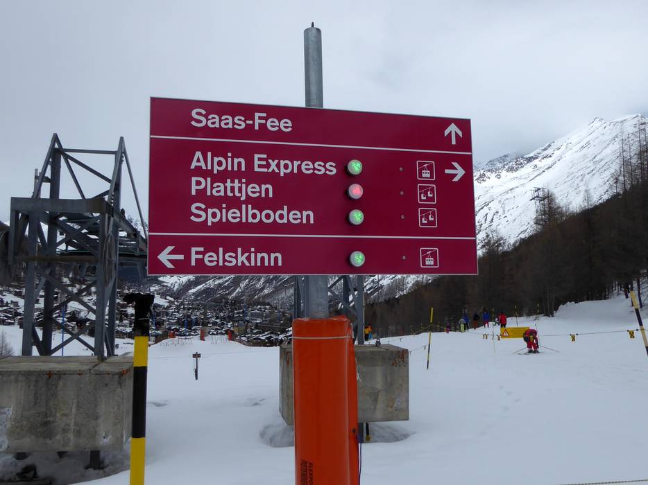 Oriëntatie (pistekaart, informatieborden, bewegwijzering piste) en veiligheid in het skigebied Saas-Fee
