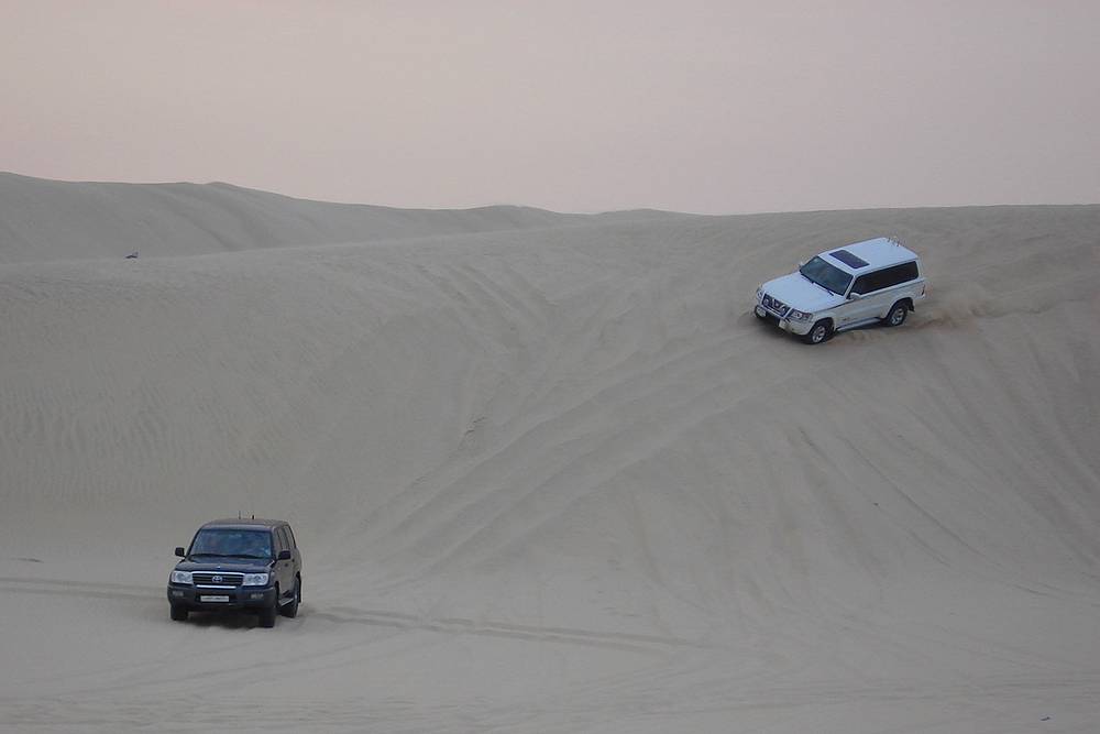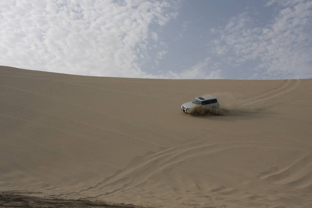 De route naar de zandwoestijn is zeer eenvoudig. Brede en goed aangelegde wegen leiden direct tot in de woestijn. Voordat je met de jeeps de woestijn in gaat, wordt er wat lucht uit de banden gelaten.