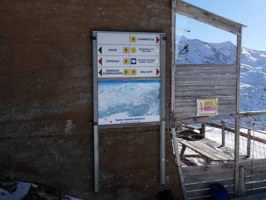 Oriëntatie (pistekaart, informatieborden, bewegwijzering piste) en veiligheid in het skigebied Santa Caterina Valfurva