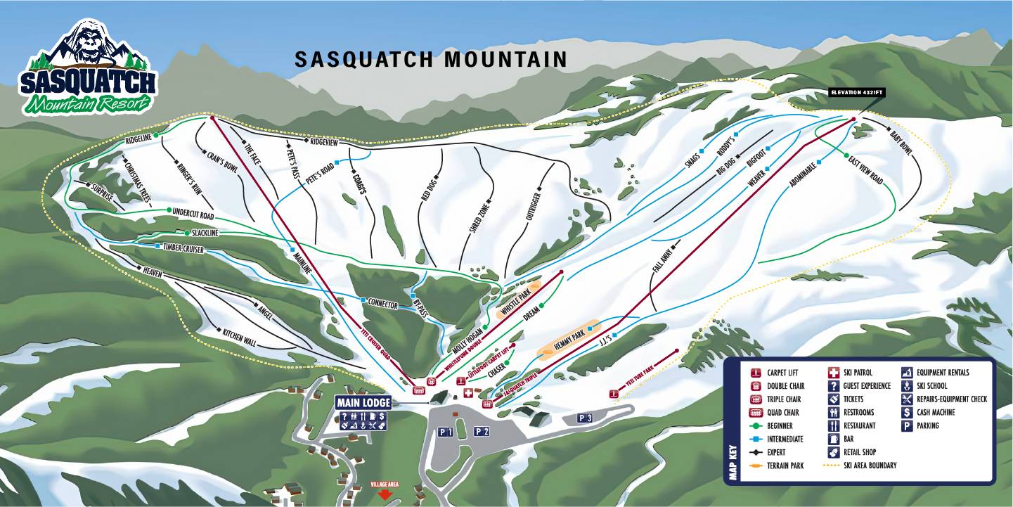 Pistekaart Sasquatch Mountain seizoen 2025/2026