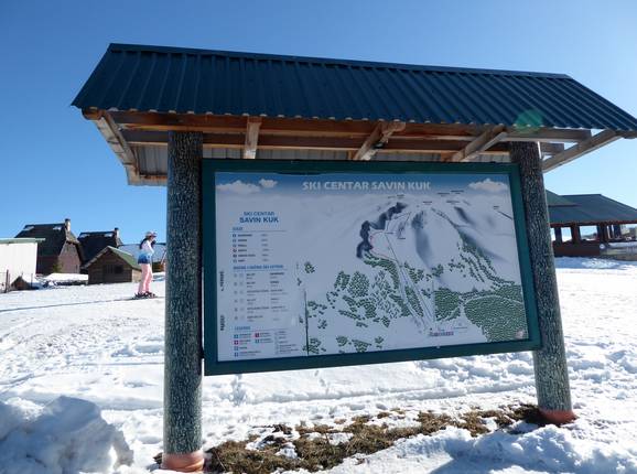 Bij het dalstation vind je een pistekaart van het skigebied Savin Kuk. De pistes zijn deels bewegwijzerd en gemarkeerd. Actuele bedrijfsinformatie zou nog wenselijk zijn.