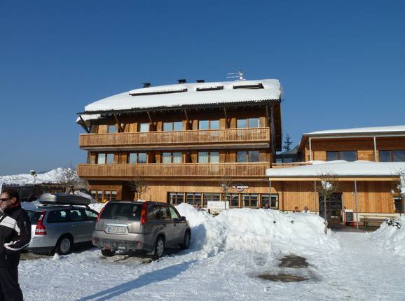 Direct aan de voet van de pistes aan de andere kant van de parkeerplaats.