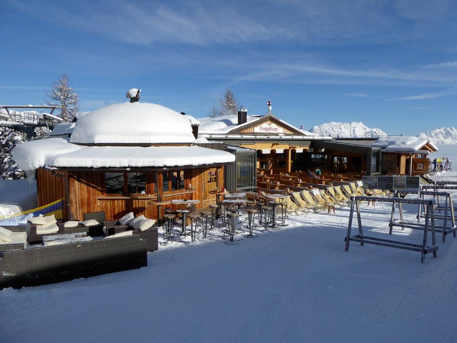 In totaal biedt de Knapplhütte op de Hauser Kaibling 500 zitplaatsen. Het zonneterras heeft bijna de hele dag zon, waardoor je hier gemakkelijk enkele uren kunt doorbrengen. Aan te bevelen zijn de bijzonder grote saladeschotels. De snelle service maakt ook een korte, maar toch vullende lunchpauze mogelijk.