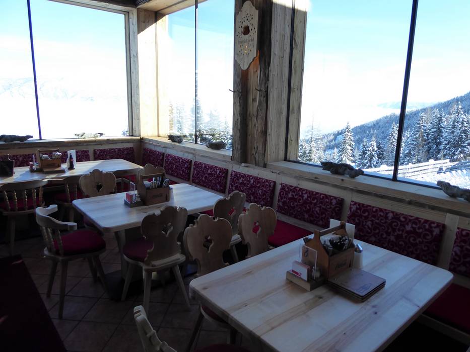 Een prachtig panorama biedt het zonneterras van de Hochwurzenhütte. De goede, traditionele keuken kan bij minder goed weer echter ook in de gezellige, traditionele stube worden genoten.