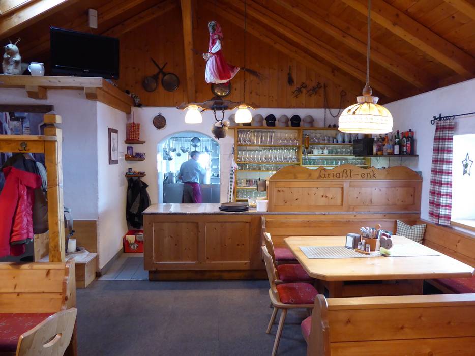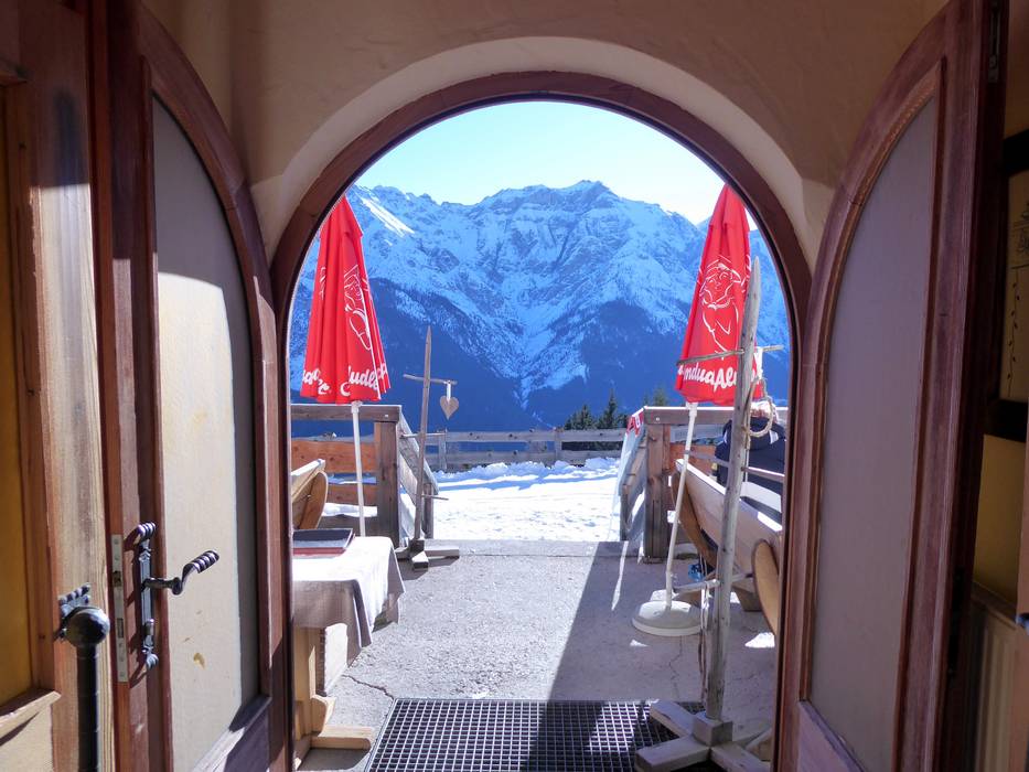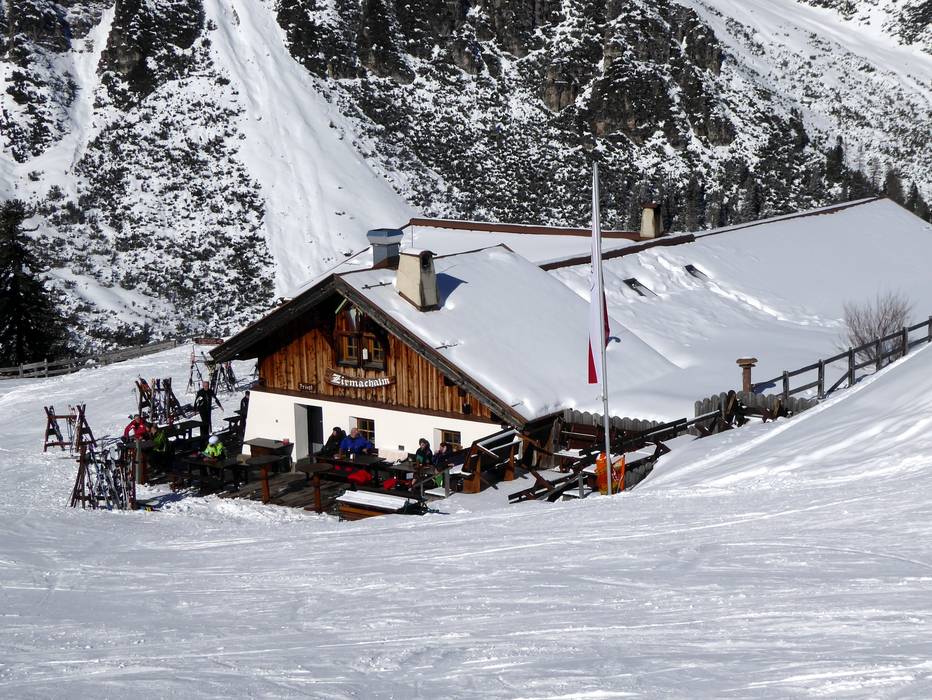 De Zirmachalm uit het huttenimperium van Andreas Stern doet het zonder zelfbediening en verhoogt daarmee het comfort enorm. Dat is sowieso al behoorlijk verleidelijk, want binnen wacht een indrukwekkende tegelkachel en buiten een zonneterras met het beste uitzicht op de pistes. Even goede als stevige Tiroolse herbergkost maken het aanbod compleet en zorgen voor een populaire tussenstop.