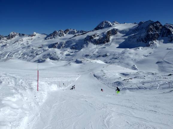 Pisteaanbod, variaties bij de afdalingen in het skigebied Schnalstaler Gletscher (Schnalstal-gletsjer)