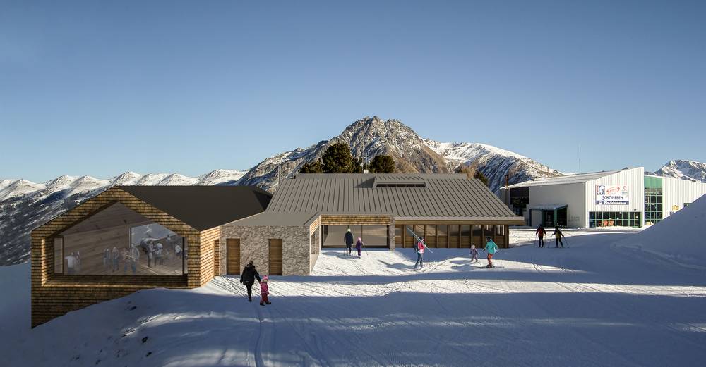 Uitbreiding en verbouwing van de Schönebenhütte evenals vernieuwing van het zonneterras en de Schirmbar.Uitbreiding Rojenafdalingen