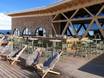 Aan de bar van het bergrestaurant La Motta kun je de dag heerlijk afsluiten. In de lounge of in de ligstoelen kun je ontspannen genieten.