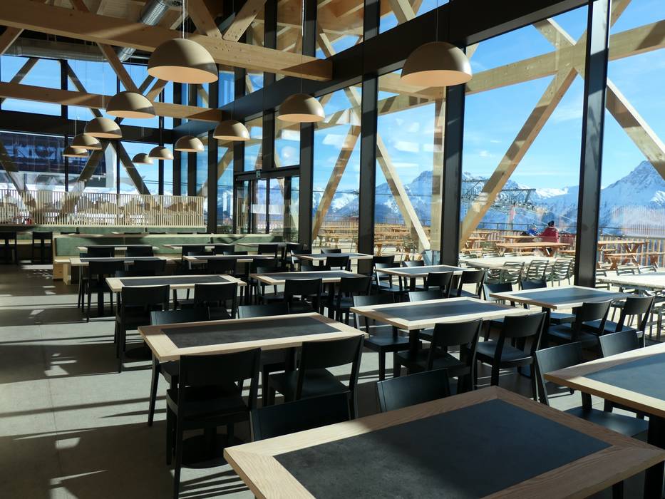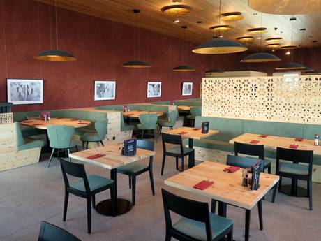 Typisch bergrestaurant met menu’s, à la carte en een grote sterrenbar op het zonneterras. In het rustieke fonduestübli worden verschillende fondues geserveerd.
