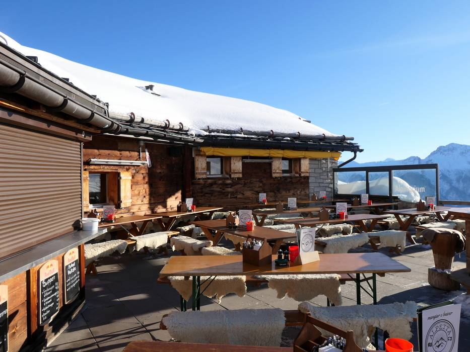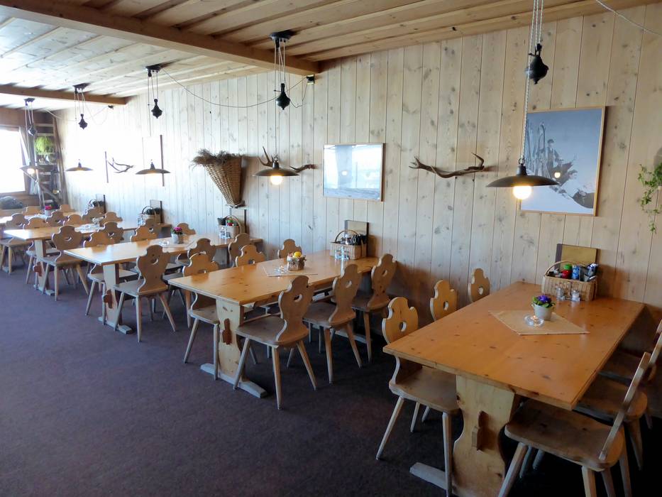 De gezellige berghut is ideaal voor een pauze op de droompiste. Bij koud weer nodigt de knusse en authentieke stube met open haard uit. Als de zon schijnt, kun je plaatsnemen op het zonneterras en genieten van het panorama.
