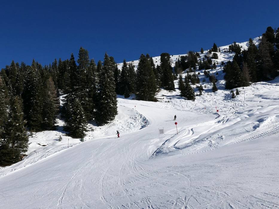 De piste loopt zonder onderbreking van het bergstation van de Furglerblickbahn tot het dalstation in See.