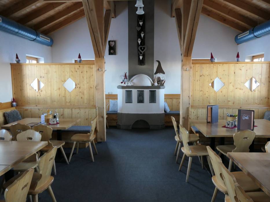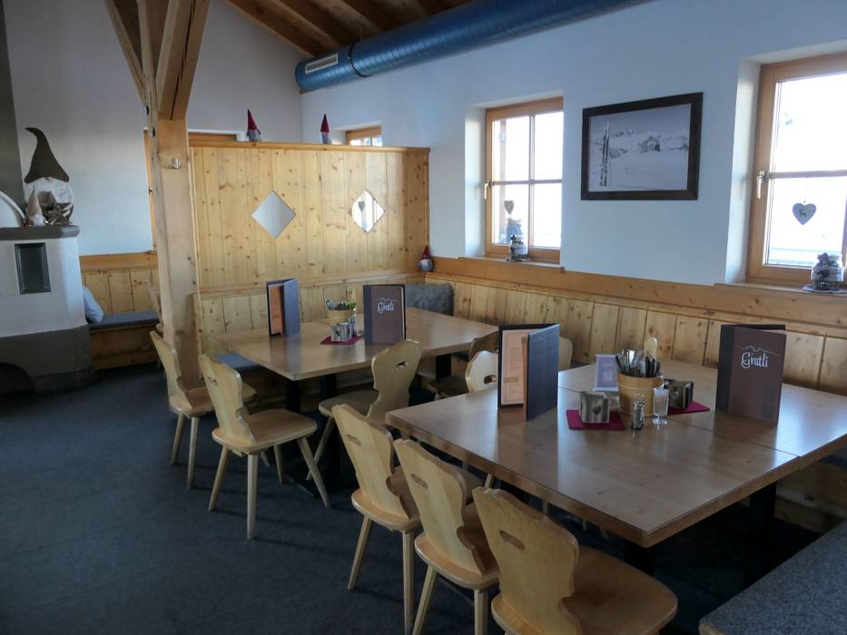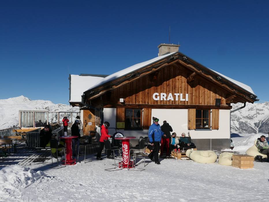 Het restaurant Gratli biedt een mooi bedieningsrestaurant met zonneterras en vriendelijke service. Het hoogtepunt is de reuzen-Gratli-Burger en natuurlijk ook de andere gerechten en drankjes. Direct naast de hut bevindt zich in diamantvorm de Skybar.