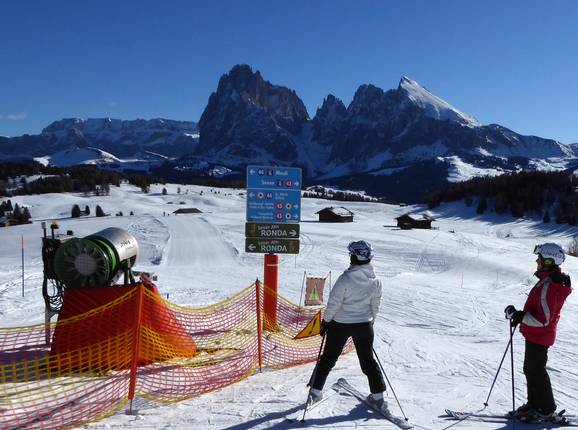 Oriëntatie (pistekaart, informatieborden, bewegwijzering piste) en veiligheid in het skigebied Seiser Alm (Alpe di Siusi)