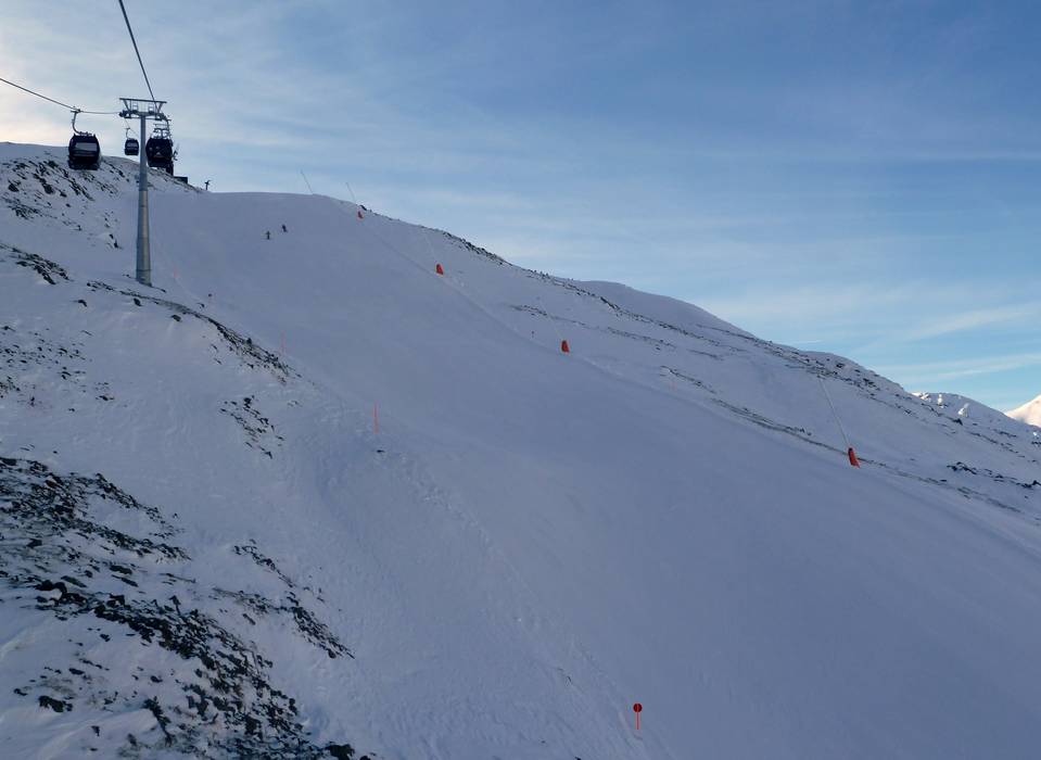 nieuwe zwarte skiroute "Kamikaze" vanaf het bergstation van de nieuwe AlmbahnNieuwe zwarte afdaling Direttissima (Fiss)