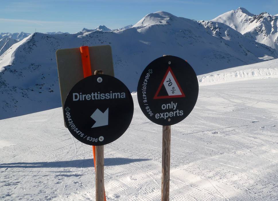 "Direttissima" als zwarte afdaling vanaf het bergstation van de nieuwe AlmliftNieuwe afdaling Adlerpiste (Fiss)
