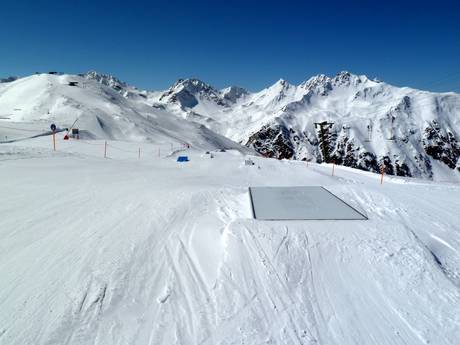 Snowpark Fiss Het Snowpark Fiss bevindt zich bij de Schöngampbahn en biedt rails, jumps, kickers, boxen en obstakels. Het hoogtepunt is de Big Air Bag. De landing na de sprong gebeurt op een groot luchtkussen. Jumps kunnen hier ideaal geoefend worden.