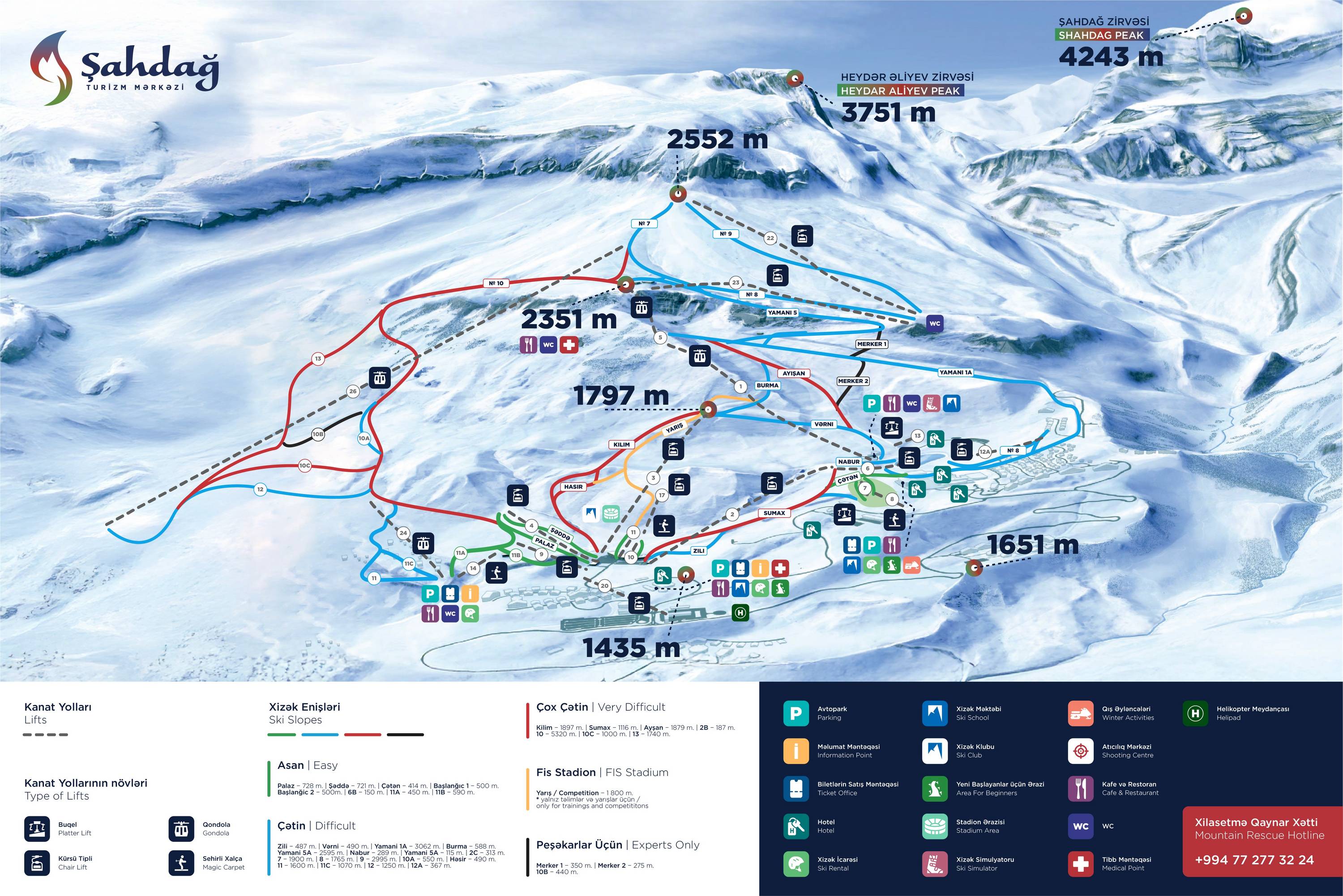 Pistekaart Shahdag (Şahdağ) seizoen 2025/2026