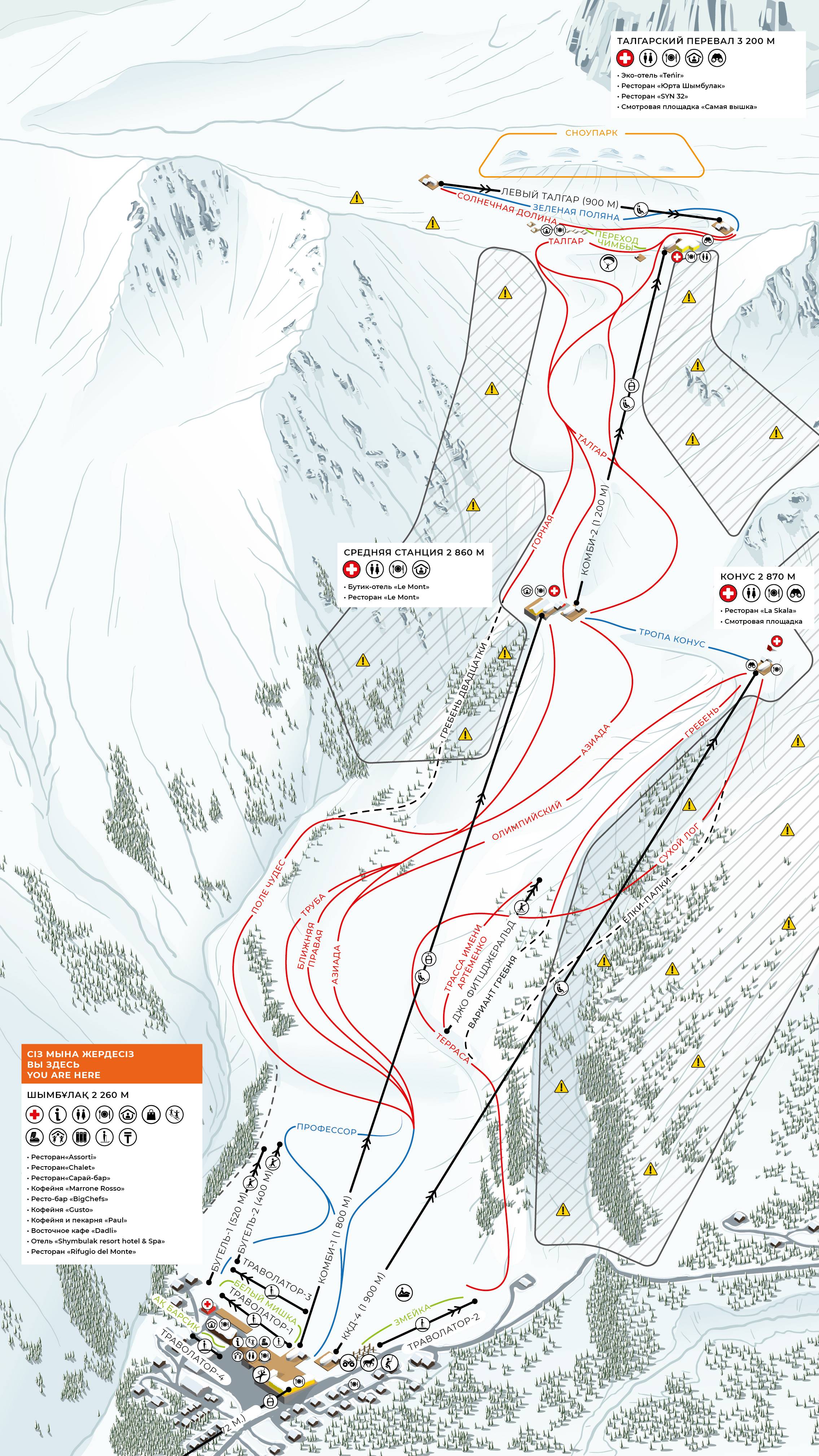 Pistekaart Shymbulak (Chimbulak) seizoen 2025/2026
