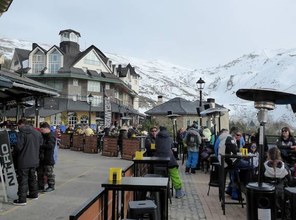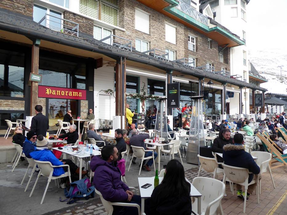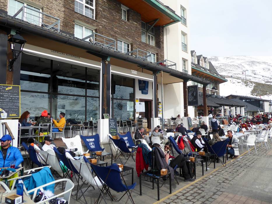 In het dalplaatsje Pradollano kun je de skidag heerlijk afsluiten in talloze cafés, bars en restaurants. Op de zonneterrassen zit je samen en geniet je van drankjes en Spaanse specialiteiten. Zelfs hartje winter is de zon hier vaak zo krachtig dat je buiten kunt zitten. In sommige gelegenheden draaien ook dj’s en wordt er muziek aangeboden.