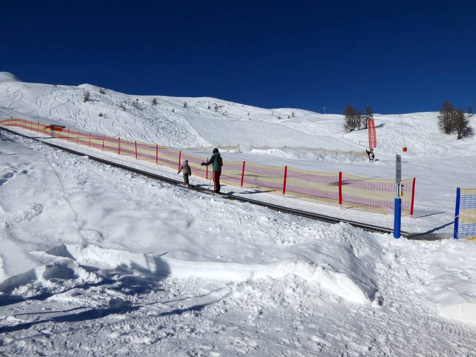 Bij het bergstation van de gondelbaan is er een afgebakend, vrij toegankelijk oefenterrein met een transportband. Het transportband van de skischool kan alleen gebruikt worden in combinatie met skischoollessen. Boven het bergstation bevinden zich eenvoudige en brede pistes, die bereikbaar zijn met een stoeltjeslift en een sleeplift. De dalafdaling is tot aan het middenstation eenvoudig, daarna middelzwaar.
