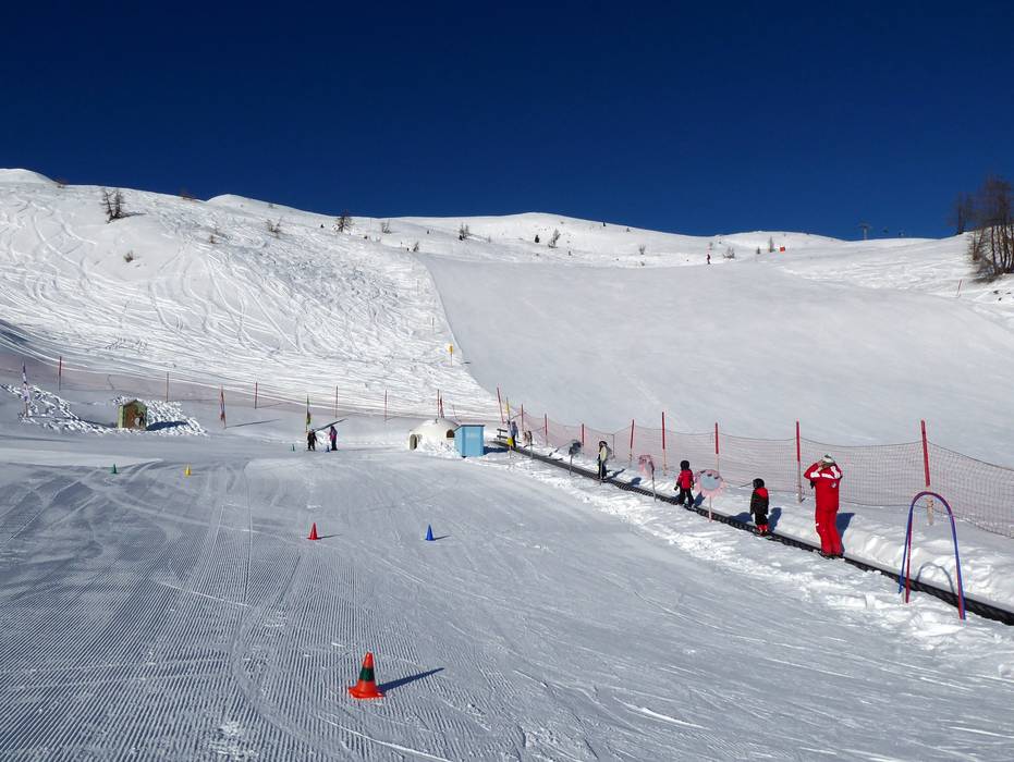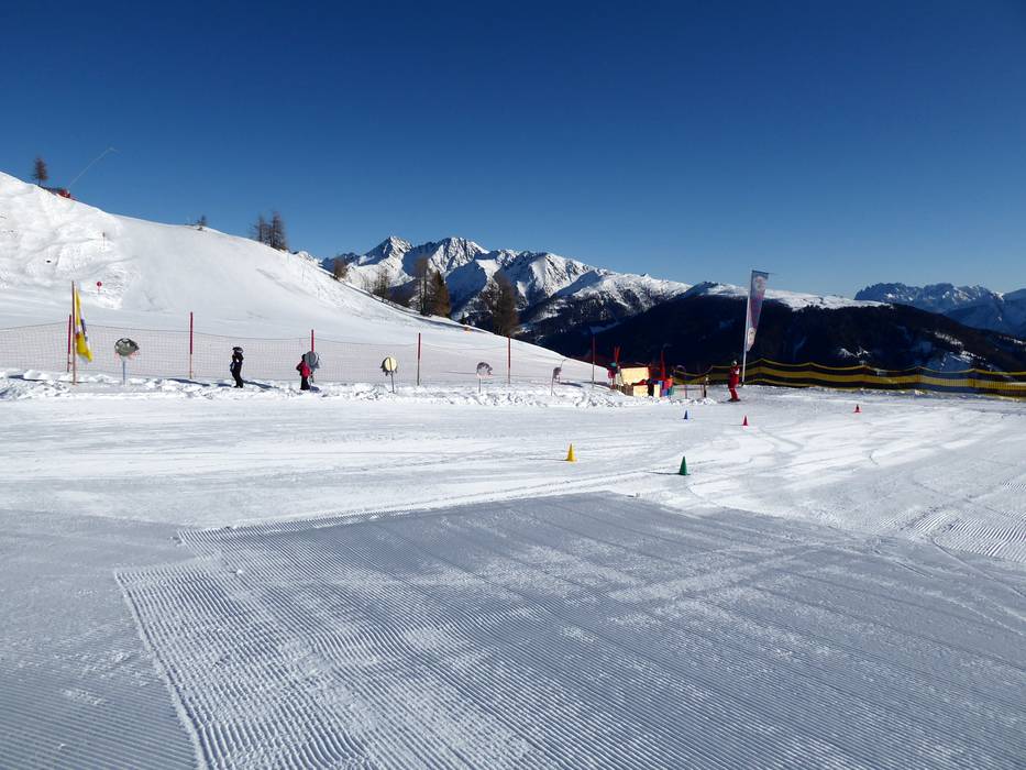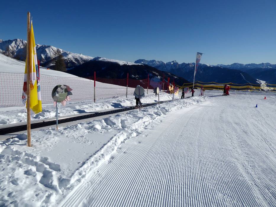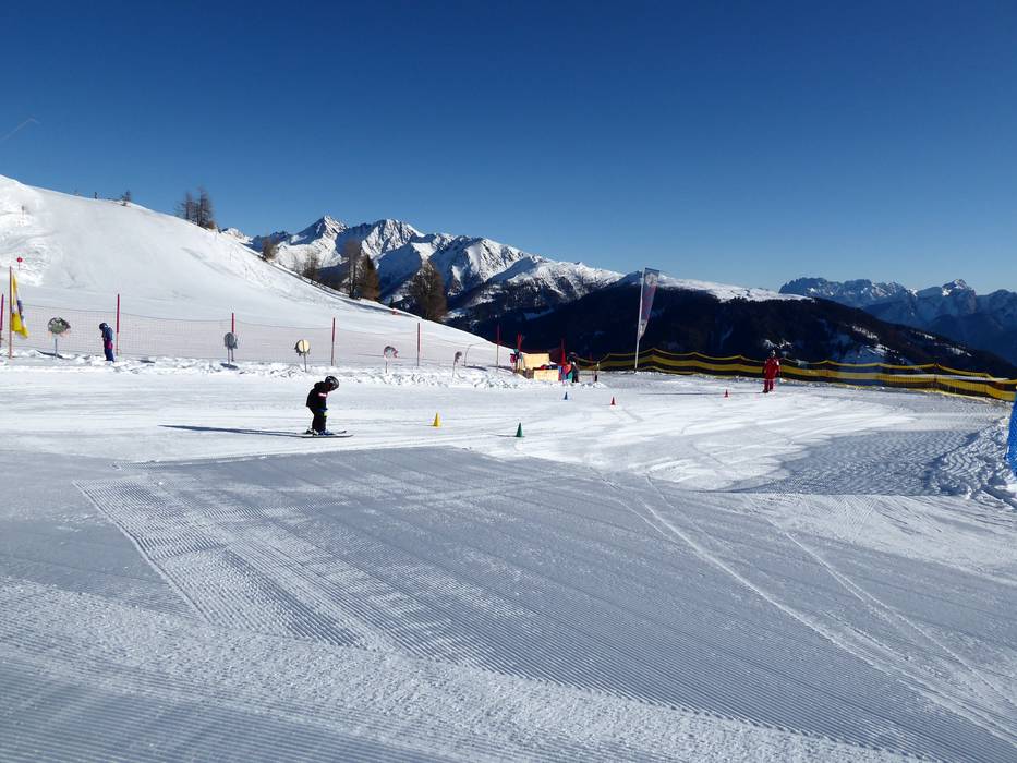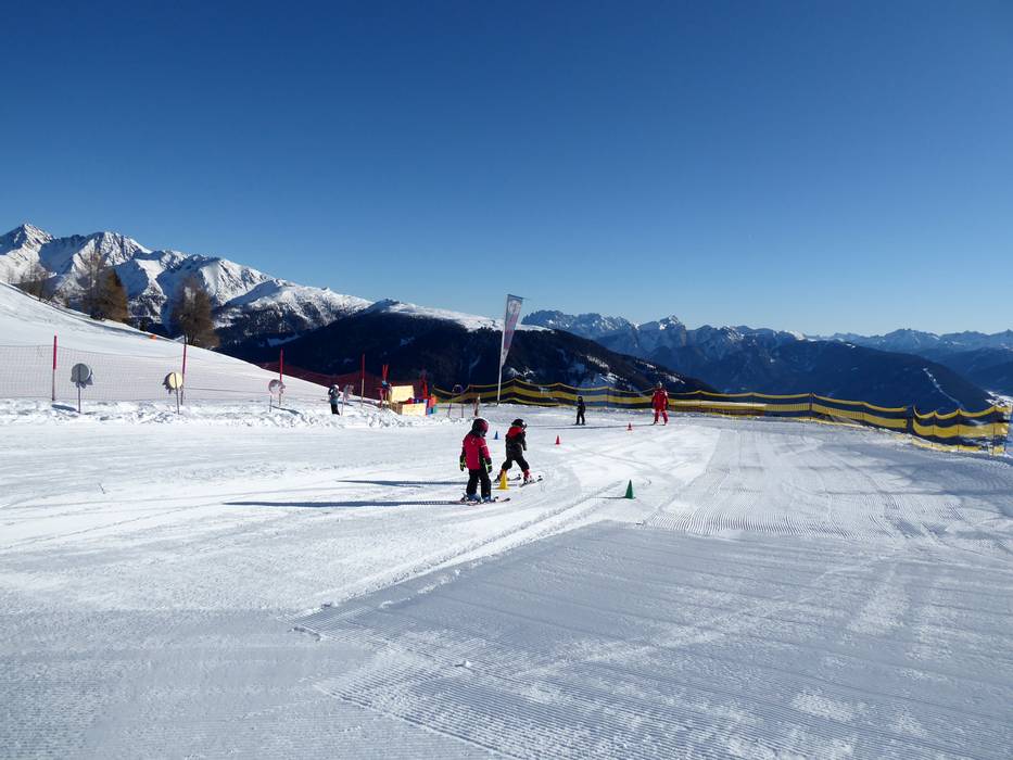 Bij het bergstation van de gondelbaan bevindt zich het Kinderland van de wintersportschool Hochpustertal. Hier kunnen de kleintjes hun eerste bochten maken op een zonnige locatie. De transportband is exclusief gereserveerd voor de skischool.