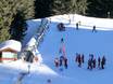 Het grote kinderland van de skischool Schruns ligt direct bij het bergstation van de Hochjoch- en Zamangbahn op 1850 m. Enthousiaste skileraars helpen de kinderen met waardevolle tips om op speelse wijze te leren skiën. Meerdere tovertapijten (lopende banden) staan hier voor de kleintjes klaar.