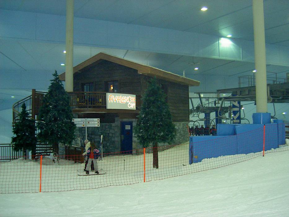 Het Avalanche Café is gebouwd in de stijl van een berghut en ligt midden op de pistes van de skihal. Vanaf het balkon kun je het gebeuren op de pistes bekijken. Je krijgt het ook niet koud, want het balkon wordt verwarmd met warmtestralers.